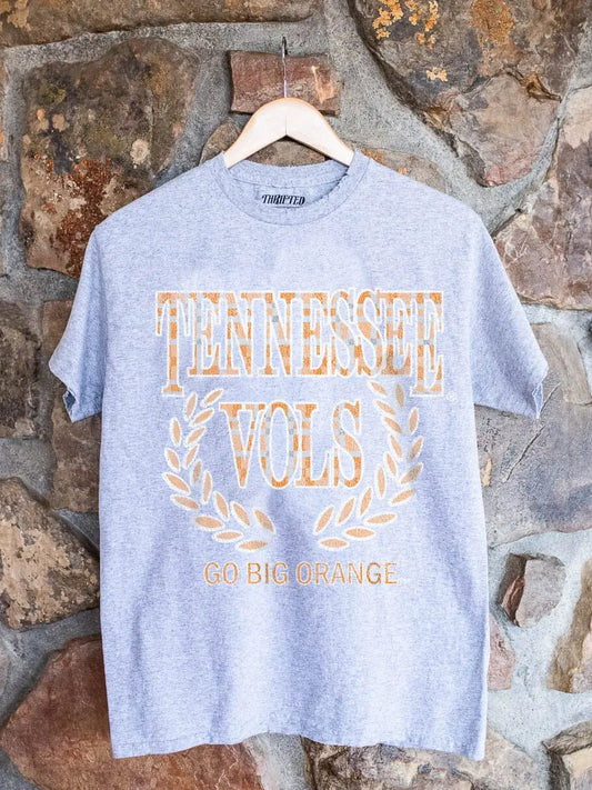 Tennessee Vols Plaid Crest Gray Thrifted Tee
